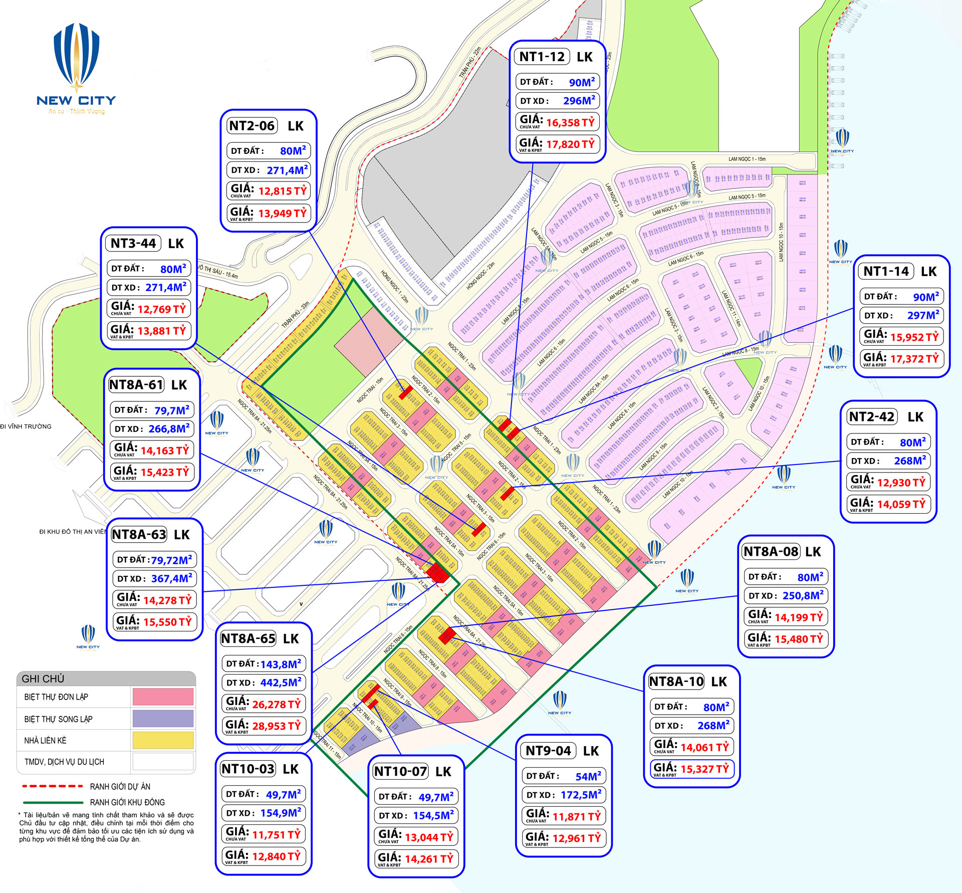 | NT8-0X | 63 | Liền kề | Tây Nam | 10,274 tỷ |